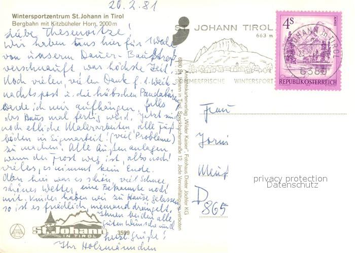 73364307 alte Postkarte St Johann Tirol Bergbahn mit Kitzbueheler Horn Wintersport Kitzbueheler Alpen postalisch gelaufen Erhaltung siehe scans [FriedD77] KatCode: 11390335070416