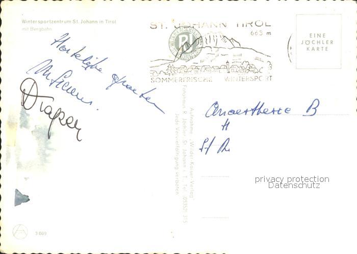 72230109 alte Postkarte St Johann Tirol Bergbahn Wintersportzentrum Skifahrer Alpenpanorama postalisch gelaufen Erhaltung siehe scans KatCode: 11390335070416