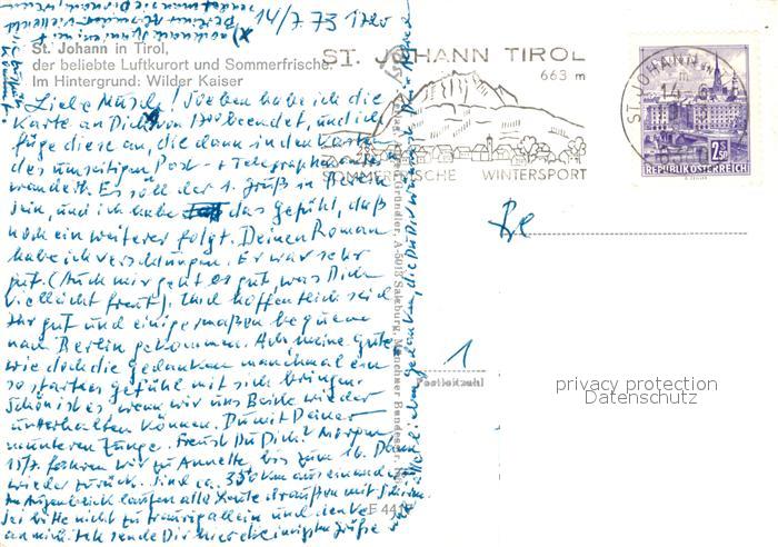 13234826 alte Postkarte St Johann Tirol Dorfpartie Blick zum Wilden Kaiser Kaisergebirge postalisch gelaufen Erhaltung siehe scans [FriedD77] KatCode: 11390335070416
