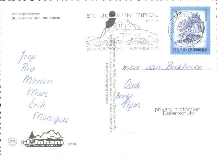 72094853 alte Postkarte St Johann Tirol Dorfpartie mit Kirche Skipiste postalisch gelaufen Erhaltung siehe scans KatCode: 11390335070416