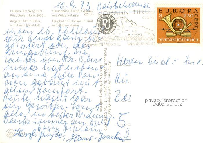 73268864 alte Postkarte St Johann Tirol Felstore Angerer Alm Harschbhel Lift Harschbuehel Huette Bergbahn postalisch gelaufen Erhaltung siehe scans [KathaD81] KatCode: 11390335070416
