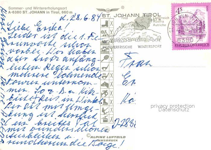 72815736 alte Postkarte St Johann Tirol Fliegeraufnahme postalisch gelaufen Erhaltung siehe scans [AndreD76] KatCode: 11390335070416