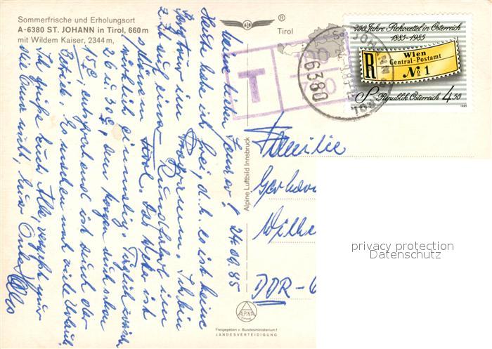 73323771 alte Postkarte St Johann Tirol Fliegeraufnahme mit Wildem Kaiser postalisch gelaufen Erhaltung siehe scans [WerneD78] KatCode: 11390335070416