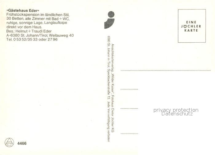 73363685 St Johann Tirol Gaestehaus Eder Winterlandschaft Alpen postalisch nicht gelaufen Erhaltung siehe scans [FriedD77] KatCode: 11390335070416