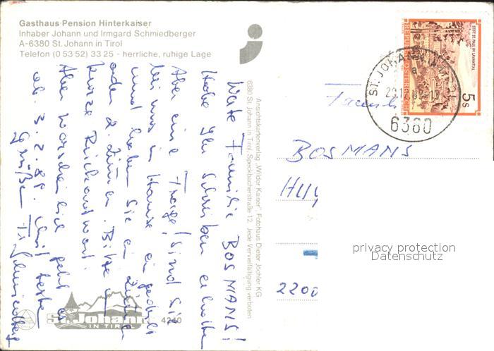 71907547 alte Postkarte St Johann Tirol Gasthaus-Pension Hinterkaiser postalisch gelaufen Erhaltung siehe scans KatCode: 11390335070416