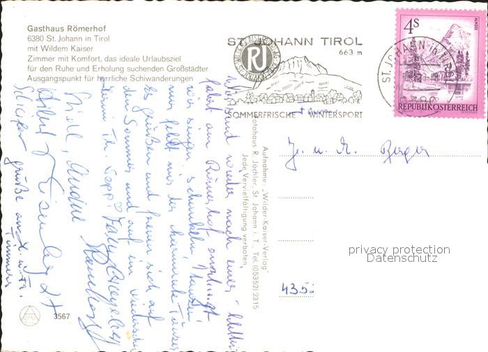 71908664 alte Postkarte St Johann Tirol Gasthaus Roemerhof Wilden Kaiser postalisch gelaufen Erhaltung siehe scans KatCode: 11390335070416