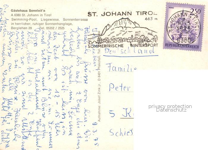 73266368 alte Postkarte St Johann Tirol Gasthaus Sonnleitn Pool postalisch gelaufen Erhaltung siehe scans [LiesaD40] KatCode: 11390335070416