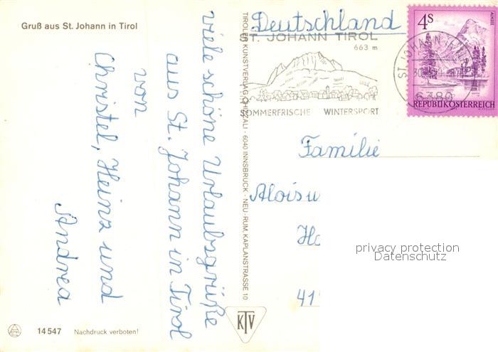 73295898 alte Postkarte St Johann Tirol Gasthaus postalisch gelaufen Erhaltung siehe scans [WerneD78] KatCode: 11390335070416