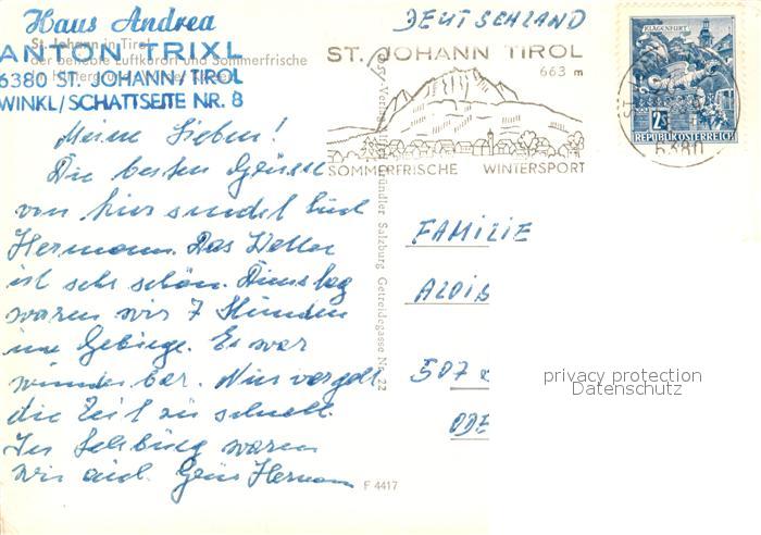 73030233 alte Postkarte St Johann Tirol Gasthof Baeren Wilder Kaiser postalisch gelaufen Erhaltung siehe scans [WerneD78] KatCode: 11390335070416
