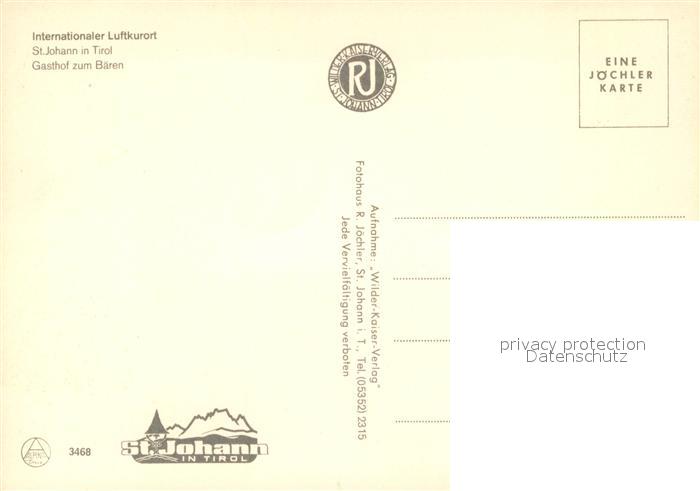 73590881 St Johann Tirol Gasthof zum Baeren postalisch nicht gelaufen Erhaltung siehe scans [KathaD81] KatCode: 11390335070416