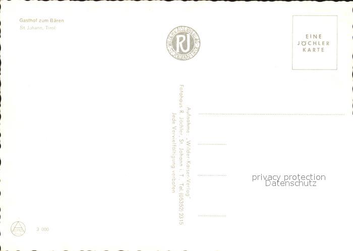 72492341 St Johann Tirol Gasthof zum Baeren postalisch nicht gelaufen Erhaltung siehe scans KatCode: 11390335070416