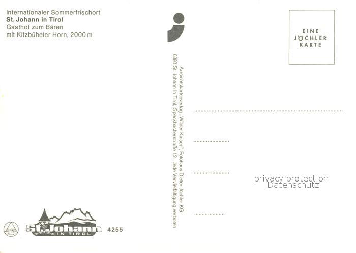 73590882 St Johann Tirol Gasthof zum Baeren postalisch nicht gelaufen Erhaltung siehe scans [KathaD81] KatCode: 11390335070416