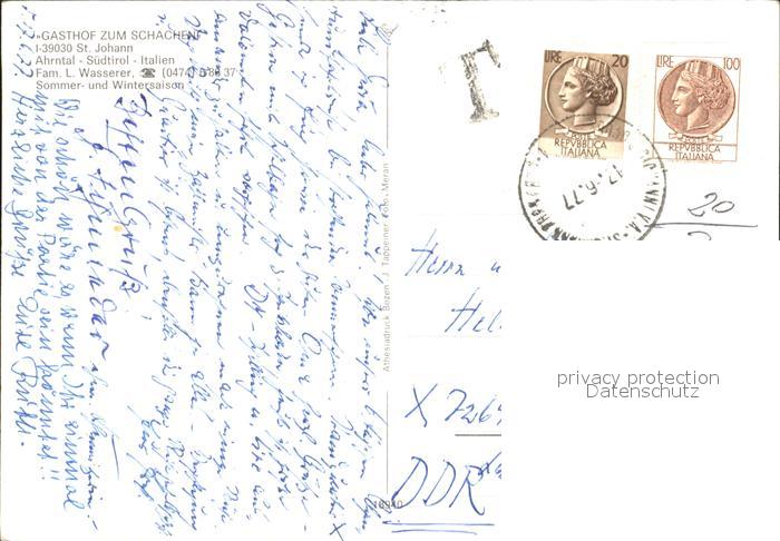 72256985 alte Postkarte St Johann Tirol Gasthof Zum Schachen Restaurant Hallenbad Kirche Alpen postalisch gelaufen Erhaltung siehe scans KatCode: 11390335070416