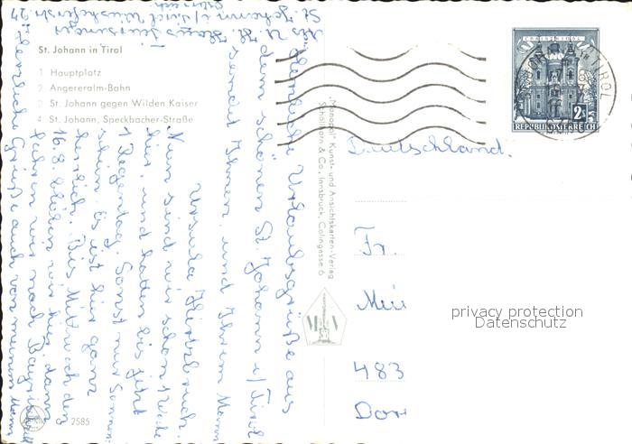 72439027 alte Postkarte St Johann Tirol Hauptplatz Angerer-Bahn Wilder Kaiser postalisch gelaufen Erhaltung siehe scans KatCode: 11390335070416