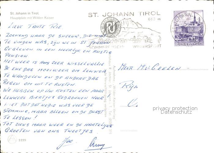 72428783 alte Postkarte St Johann Tirol Hauptplatz mit Wildem Kaiser postalisch gelaufen Erhaltung siehe scans KatCode: 11390335070416