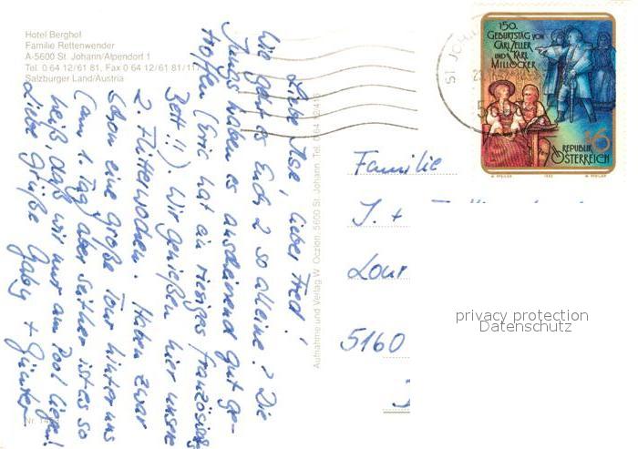 12983740 alte Postkarte St Johann Tirol Hotel Berghof postalisch gelaufen Erhaltung siehe scans [AndreD76] KatCode: 11390335070416