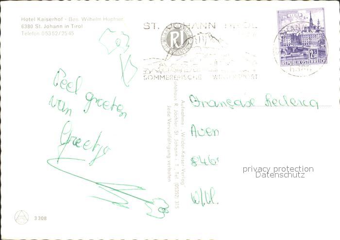 12377998 alte Postkarte St Johann Tirol Hotel Kaiserhof postalisch gelaufen Erhaltung siehe scans KatCode: 11390335070416