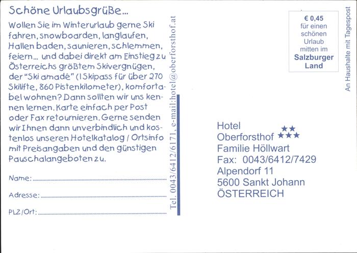 71424653 St Johann Tirol Hotel Oberforsthof postalisch nicht gelaufen Erhaltung siehe scans KatCode: 11390335070416