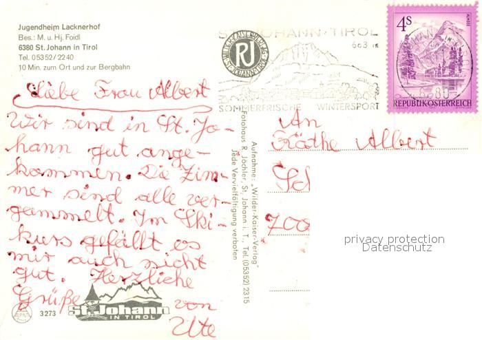 73231225 alte Postkarte St Johann Tirol Jugendheim Lacknerhof Treppenaufgang Foyer Winterlandschaft postalisch gelaufen Erhaltung siehe scans [FriedD77] KatCode: 11390335070416