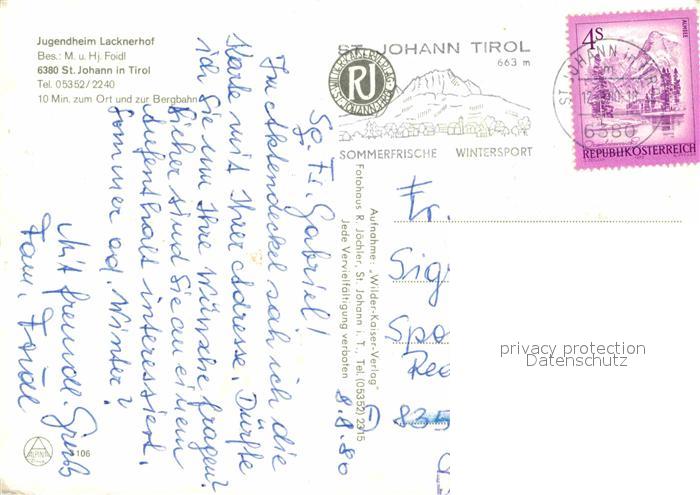 72620782 alte Postkarte St Johann Tirol Jugendheim Lacknerhof postalisch gelaufen Erhaltung siehe scans [LiesaD40] KatCode: 11390335070416