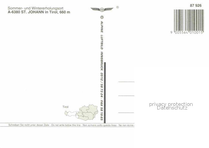 72639141 St Johann Tirol mit Kaisergebirge Fliegeraufnahme postalisch nicht gelaufen Erhaltung siehe scans [WerneD78] KatCode: 11390335070416