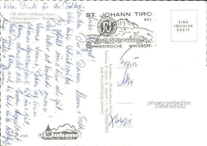 72516579 alte Postkarte St Johann Tirol mit Wildem Kaiser Schwimmbad Alpenrosen postalisch gelaufen Erhaltung siehe scans KatCode: 11390335070416