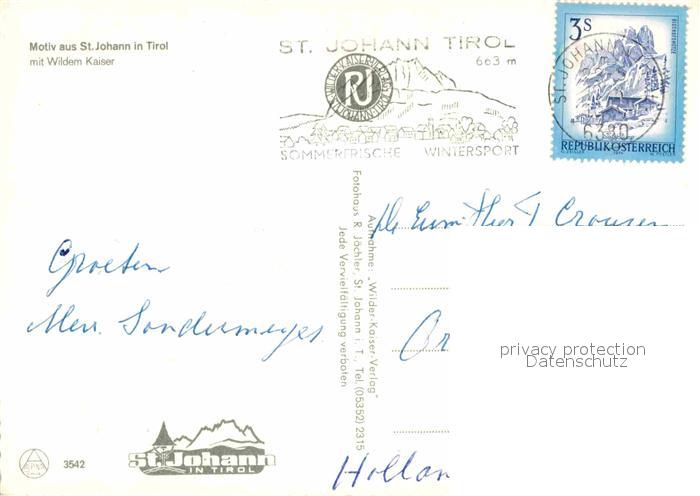 72894038 alte Postkarte St Johann Tirol Ortsmotiv mit Wildem Kaiser postalisch gelaufen Erhaltung siehe scans [WerneD78] KatCode: 11390335070416