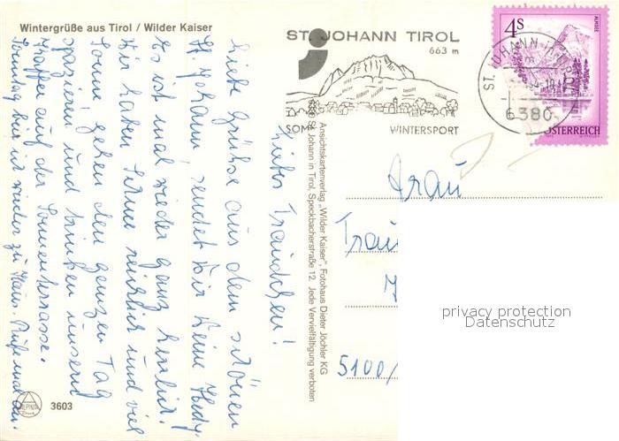 73295916 alte Postkarte St Johann Tirol Ortsmotiv mit Wildem Kaiser postalisch gelaufen Erhaltung siehe scans [WerneD78] KatCode: 11390335070416