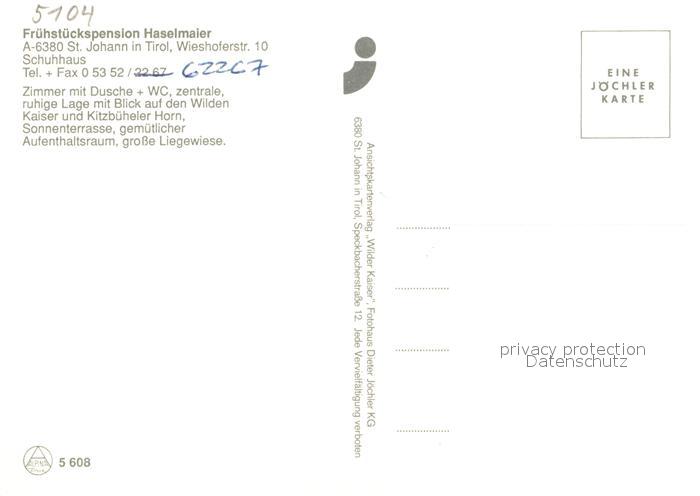 73210423 St Johann Tirol Pension Haselmaier Kaisergebirge postalisch nicht gelaufen Erhaltung siehe scans [FriedD77] KatCode: 11390335070416
