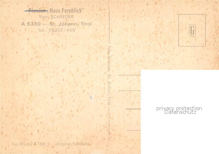13588565 St Johann Tirol Pension Haus Fernblick postalisch nicht gelaufen Erhaltung siehe scans [LiesaD40] KatCode: 11390335070416