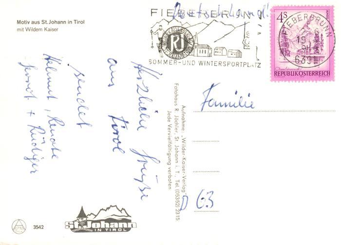 alte Postkarte St Johann Tirol Pension Neuner mit dem Wilden Kaiser postalisch gelaufen Erhaltung siehe scans [WerneD78]