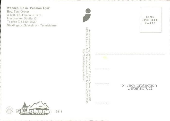 71915591 St Johann Tirol Pension Toni Bergbahn postalisch nicht gelaufen Erhaltung siehe scans KatCode: 11390335070416