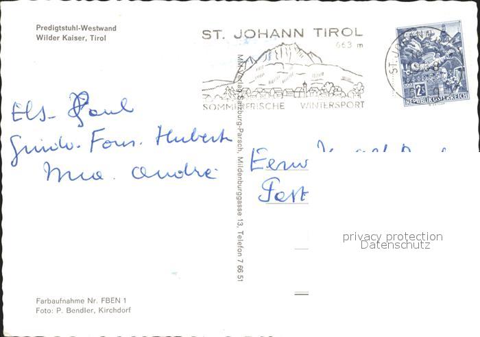 72230098 alte Postkarte St Johann Tirol Predigtstuhl Westwand Wilder Kaiser Gebirge postalisch gelaufen Erhaltung siehe scans KatCode: 11390335070416