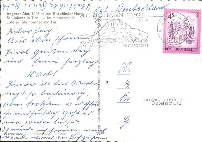 71993134 alte Postkarte St Johann Tirol Seilbahn Angerer Alm am Kitzbueheler Horn postalisch gelaufen Erhaltung siehe scans KatCode: 11390335070416