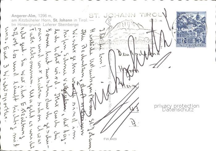 72296485 alte Postkarte St Johann Tirol Skiparadies Angerer Alm am Kitzbueheler Horn Loferer Steinberge postalisch gelaufen Erhaltung siehe scans KatCode: 11390335070416