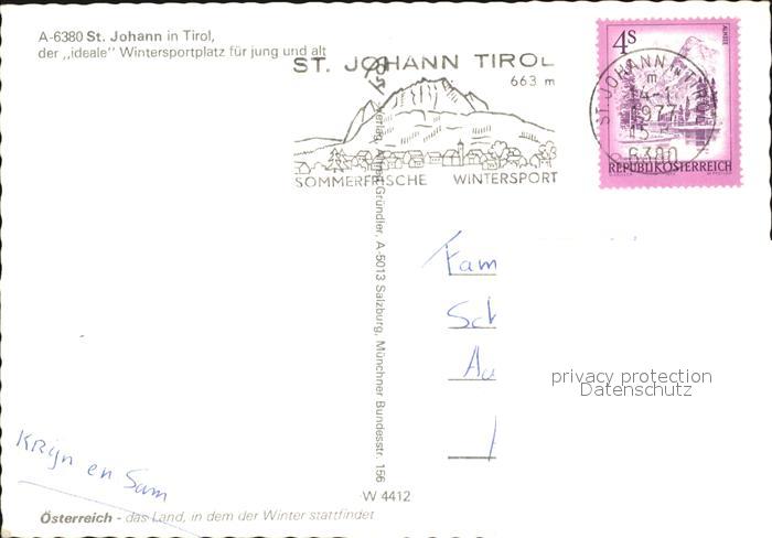72410769 alte Postkarte St Johann Tirol Skipisten postalisch gelaufen Erhaltung siehe scans KatCode: 11390335070416