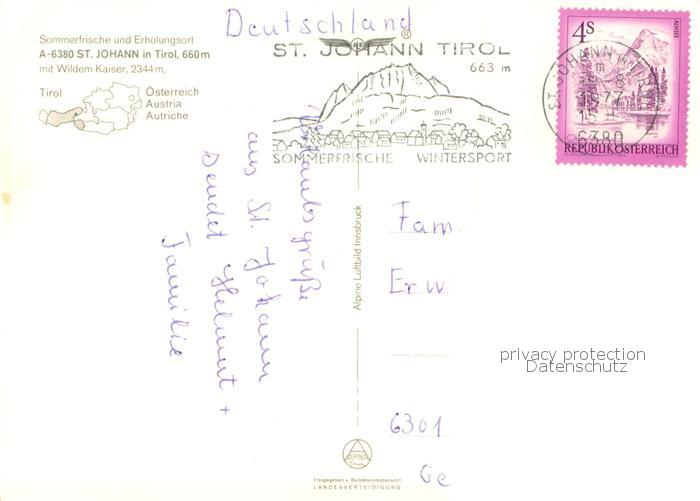 73774557 alte Postkarte St Johann Tirol Sommerfrische Erholungsort mit Wildem Kaiser Alpenflora Blumen postalisch gelaufen Erhaltung siehe scans [FriedD77] KatCode: 11390335070416