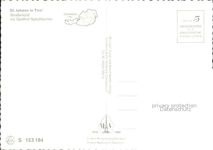 72466463 St Johann Tirol Strassenbild mit Gasthof Speckbacher postalisch nicht gelaufen Erhaltung siehe scans KatCode: 11390335070416