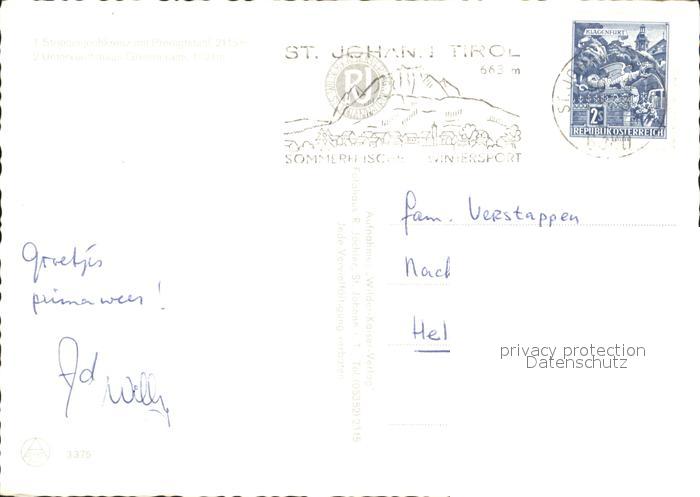 71977853 alte Postkarte St Johann Tirol Stripsenjochkreuz Predigstuhl Unterkunftshaus Griesneralm postalisch gelaufen Erhaltung siehe scans KatCode: 11390335070416