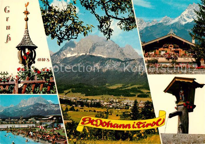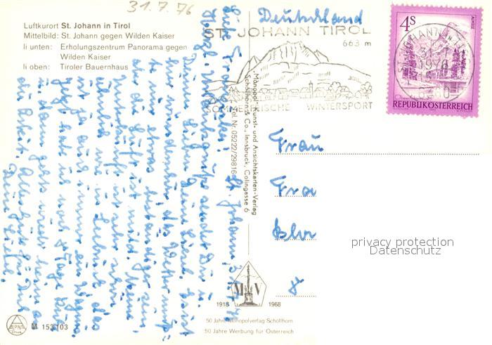 73070226 alte Postkarte St Johann Tirol Wilden Kaiser Erholungszentrum Panorama Bauernhaus postalisch gelaufen Erhaltung siehe scans [NatalD47] KatCode: 11390335070416