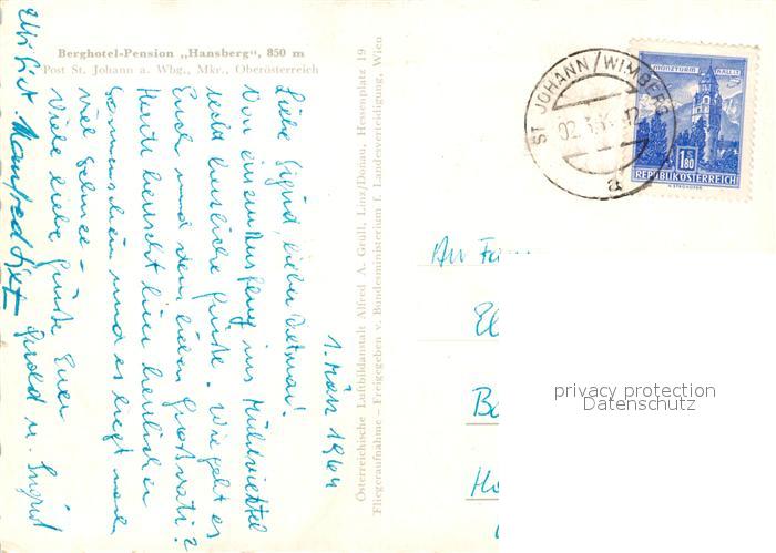 73162300 alte Postkarte St Johann Walde Berghotel Pension Hansberg Fliegeraufnahme postalisch gelaufen Erhaltung siehe scans [FriedD77] KatCode: 11390333070725
