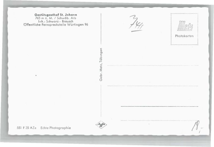 40717616 St Johann Wuerttemberg estütsgasthof * KatCode 11110008415093