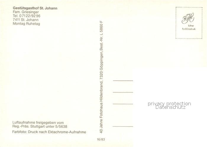 73689467 St Johann Wuerttemberg Gestuetsgasthof St. Johann Fliegeraufnahme postalisch nicht gelaufen Erhaltung siehe scans [FriedD77] KatCode: 11110008415093