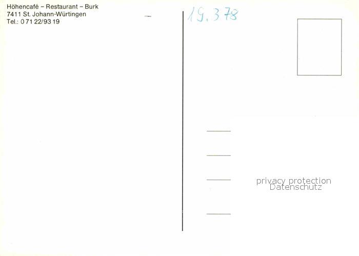 72681964 St Johann Wuerttemberg Hoehencafe Restaurant Burk postalisch nicht gelaufen Erhaltung siehe scans [WerneD78] KatCode: 11110008415093