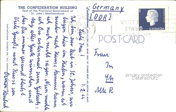 old postcard St Johns Newfoundland and Labrador The Confederation Building postalisch gelaufen Erhaltung siehe scans