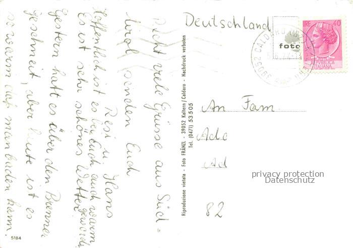 74080170 old postcard St Josef am See Kaltern Caldaro Bolzano IT Camping St Josef Terrasse Bootssteg postalisch gelaufen Erhaltung siehe scans [WerneD78] KatCode: 11240