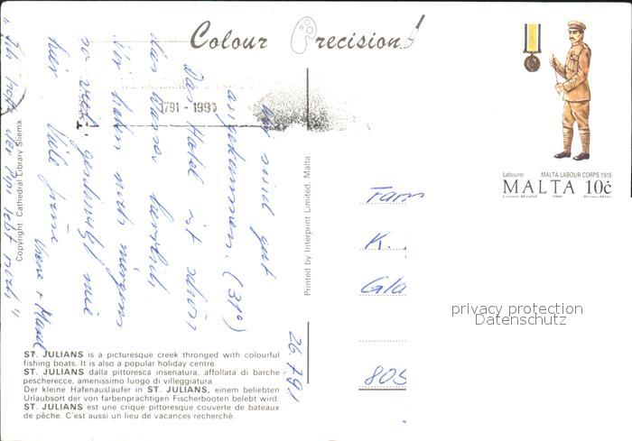 old postcard St Julians Hafen postalisch gelaufen Erhaltung siehe scans