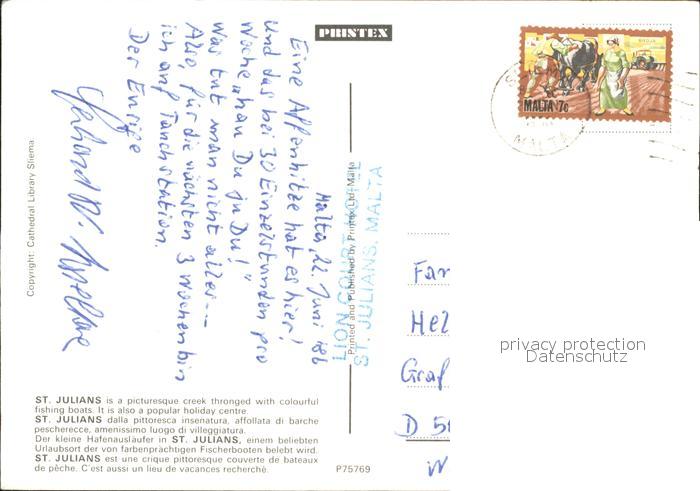 old postcard St Julians Yacht Boote postalisch gelaufen Erhaltung siehe scans