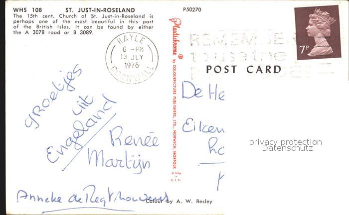 old postcard St Just in Roseland 15th century Church postalisch gelaufen Erhaltung siehe scans