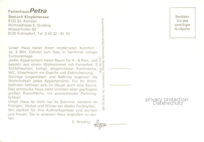 73773698 St Kanzian Klopeiner See Fliegeraufnahme Ferienhaus Petra Innen-Aussenansicht postalisch nicht gelaufen Werbekarte (keine Postkarte) Erhaltung siehe scans [LiesaD40] KatCode: 11390213020813
